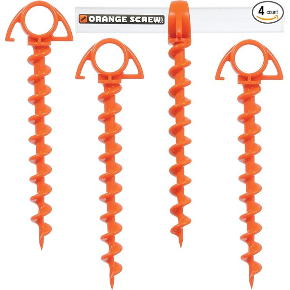 Orange Screw Ground Anchors are a unique and innovative option for securing your tent. These stakes are made from 100% recycled materials and feature a screw design that provides exceptional holding power, even in soft soil.