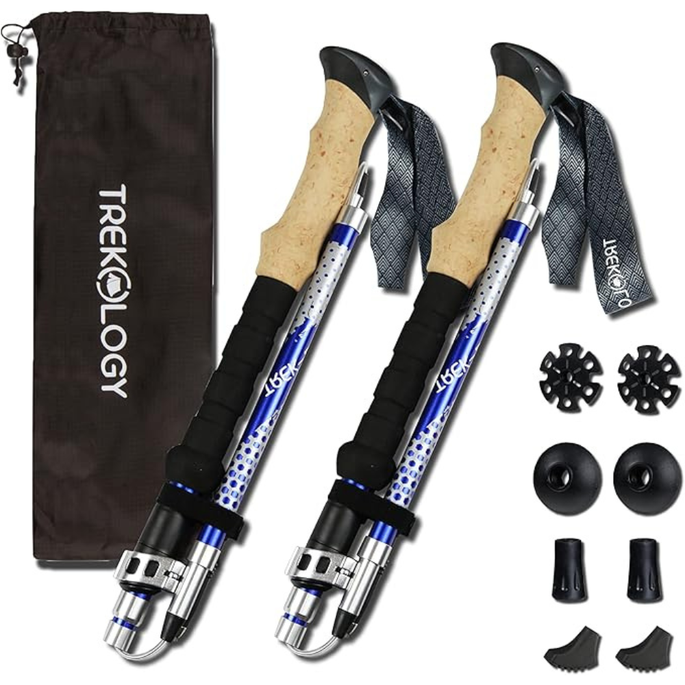 Description: The TREKOLOGY Trekking Hiking Sticks are a great option for those who want a lightweight and compact set of poles. Made from durable aircraft-grade aluminum, these poles can handle rugged terrain and support heavier weights. They also have an ergonomic cork grip that wicks away sweat from your hands, allowing for a comfortable and secure hold.