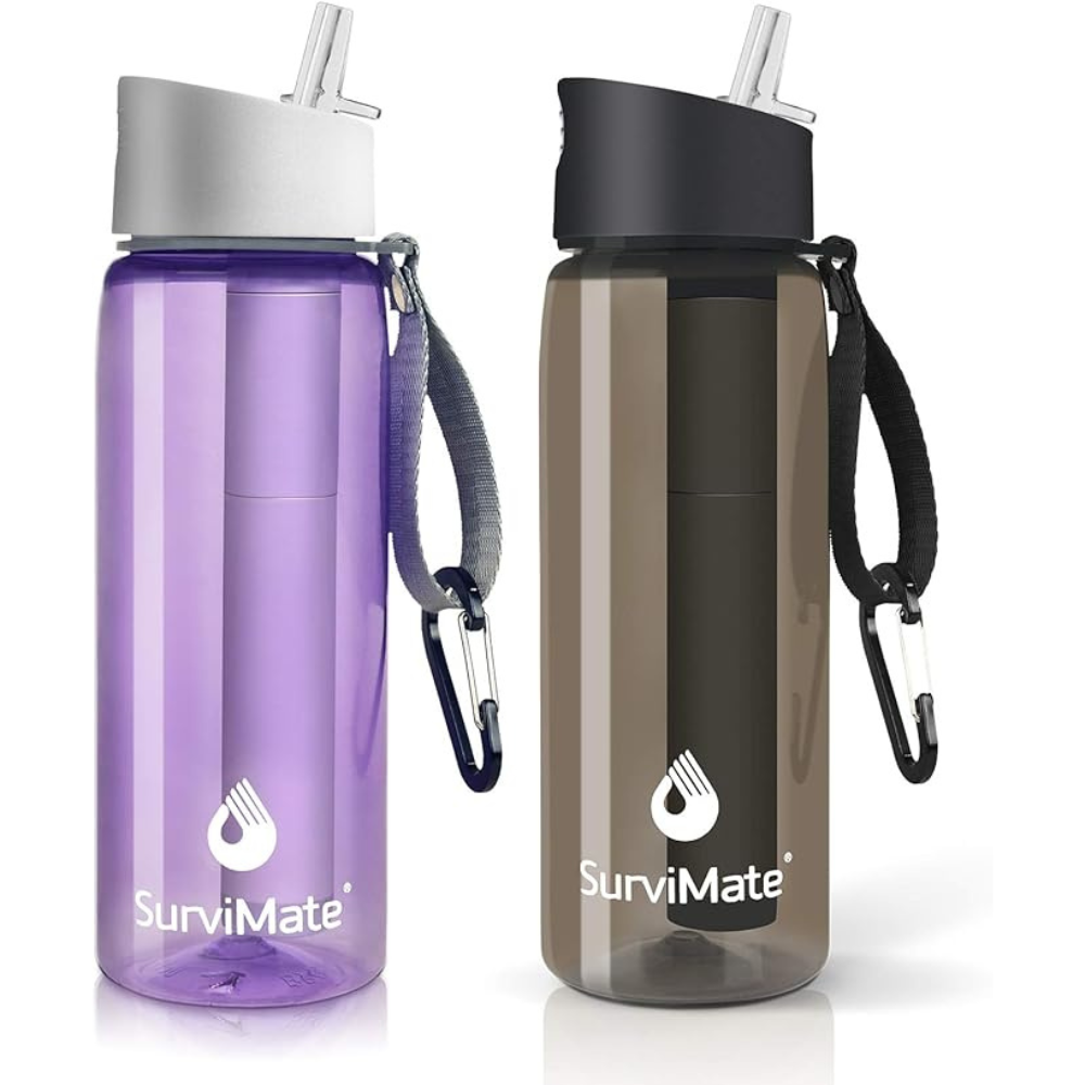 Designed for rugged outdoor use, the SurviMate bottle turns rivers, lakes, and streams into your personal water source. A clean-looking water source could still be contaminated with viruses, harmful bacteria, protozoa, or other microorganisms invisible to the human eye, making the SurviMate an essential tool for safe hydration. Some filtering water bottles are designed to remove bacteria and protozoa from untreated water sources, ensuring safer drinking options in the wild.
