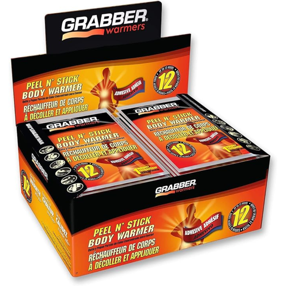 Grabber Body Warmers are designed for full-body warmth. Large and effective, they fit inside jackets or sleeping bags, providing up to 12 hours of heat—perfect for campers.